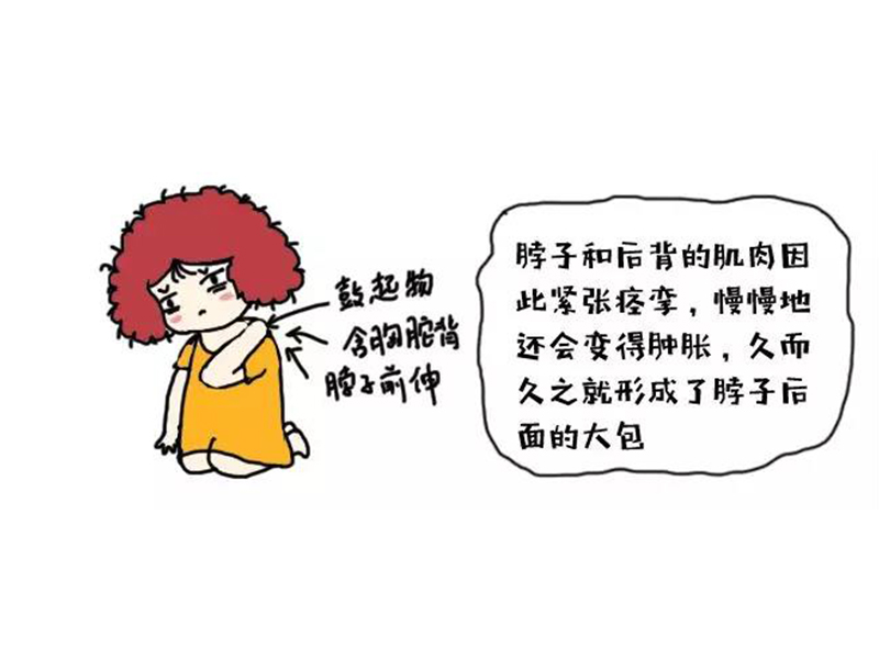 从西医的角度来说,颈后大包周围有很多重要的肌肉,骨性凸起必然会引起周围肌肉的改变,造成肩颈肌肉紧张僵硬。