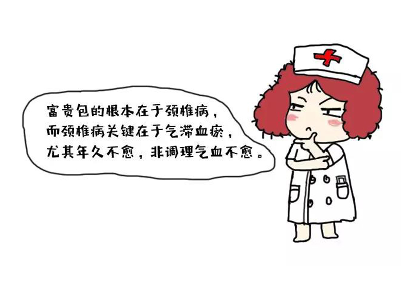 颈椎这块地本来应该经常活动的部分,看电视、看电脑多了,缺乏运动,它的气血不通畅,自我防御能力就要降低。颈椎病关键在于气滞血瘀,尤其年久不愈,非调理气血不愈。