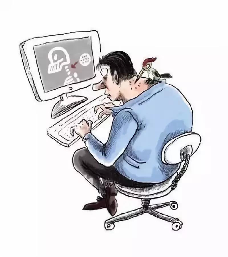 当肌肉长期处于紧张状态,就会感觉肌肉酸痛。正常情况下,如果胳膊腿酸了,我们活动一下,这样的现象会很快消失,但是,用电脑就不一样了,由于我们是长时间处于微弱的紧张状态,这就好比温水煮青蛙一样,等我们查觉的时候,就已经晚了。它造成的后果就是,颈腰椎周围的韧带由于得不到充足的气血供应,就会慢慢形成钙化,两侧的牵拉受力开始不均匀,久而久之,椎间盘就会突出,挤压周围的组织和神经,颈腰椎病就会形成。