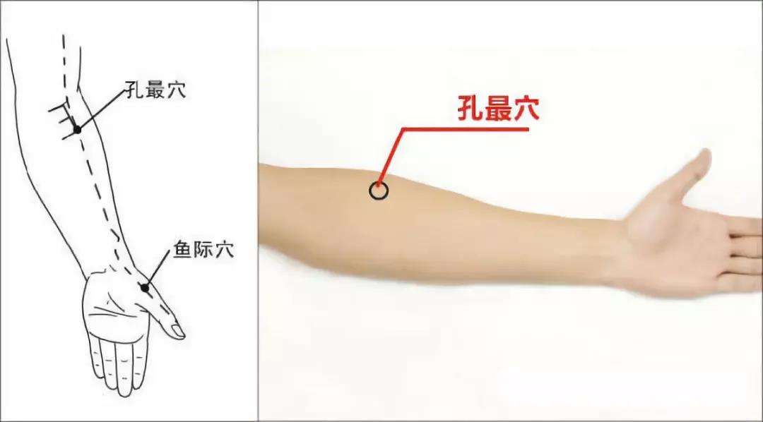 建议大家每天敲揉肺经的孔最穴、点揉鱼际穴,在痛点处每次操作5—10分钟。